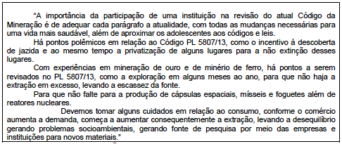 No segundo semestre de 2016, o projeto intitulado “Promoção de letramento científico por meio de educação patrimonial e de mapas conceituais em jogo de RPG” foi desenvolvido com estudantes do 3º ano do Ensino Médio, na disciplina de Química, com o objetivo de apresentar o conhecimento científico como instrumento para sociedades mais democráticas e participativas. Para esse fim, foi discutido o desastre tecnológico decorrente do rompimento da barragem de rejeitos de mineração em Mariana/MG, com foco nas implicações para diferentes atores sociais. A identificação dos estudantes com esse tema foi favorecida com uma contextualização a partir do patrimônio cultural local: quatro instituições de Lorena/SP, cidade em que se situa a escola, foram transformadas em personagens de um jogo de RPG. Cada uma delas, no jogo, representou interesses e demandas de diferentes atores sociais impactados pelo desastre de Mariana/MG: o Instituto Uka de Saberes Ancestrais (UKA) representou populações ribeirinha e indígena; a Floresta Nacional de Lorena (FLONA) representou unidades de conservação e de proteção ambiental; o Instituto de Estudos Valeparaibanos (IEV) representou o patrimônio histórico e cultural afetado; e a Escola de Engenharia de Lorena (EEL USP) representou instituições de ensino e pesquisa situadas na bacia do Rio Doce. Os estudantes da turma foram divididos em quatro equipes, cada qual interpretando uma instituição/personagem. Ao longo das rodadas semanais do jogo, as equipes aprofundaram-se nas características do personagem interpretado (isto é, o motivo de fundação daquela instituição; a sua missão, visão e valores) além de interagirem com as demais equipes/personagens, obtendo um entendimento mais amplo sobre as causas e as implicações deste desastre. Como fechamento do projeto, foram propostos pelos alunos aprimoramentos na legislação referente à extração de minérios, bem como reflexões sobre a conciliação, na medida do possível, dos diferentes interesses envolvidos em atividades de extração mineral. Já no primeiro semestre de 2017, esta discussão foi estendida a estudantes de graduação em engenharia química da Escola de Engenharia de Lorena EEL-USP. As atividades realizadas serão compiladas e disponibilizadas em uma cartilha para orientar novas propostas didáticas sobre desastres tecnológicos, e em particular sobre a temática de Mariana/MG, em outras instituições de ensino.