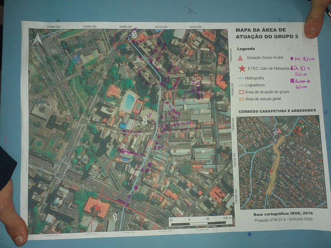 Resultados: Os alunos tiveram a oportunidade de discutir sobre os problemas que enfrentam durante o período de chuvas, considerando que a escola localiza-se a uma das áreas mais críticas em relação à ocorrência de inundações no centro do município de Santo André. Foi possível discutir sobre o entendimento de que o desastre é uma construção social, uma vez que as formas de uso e ocupação do solo e as intervenções no ambiente urbano agravam essa situação. Outro aprendizado foi quanto a compreensão da ameaça do fenômeno da inundação que ocorrem em áreas de planícies fluviais. O trabalho em sala de aula, despertou o interesse pelo conhecimento das localidades atingidas, o trabalho de campo corroborou para a análise do problema e ao final discutiu-se sobre formas de reduzir as vulnerabilidades, mitigar os impactos e aumentar a resiliência para enfrentar situações de riscos e desastres.