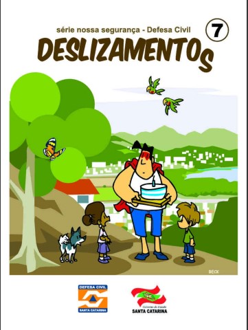 Deslizamentos – Série Nossa Segurança. Defesa Civil de Santa Catarina. História em quadrinhos, Secretaria de Estado da Defesa Civil, 2012, Cartilha 7.
