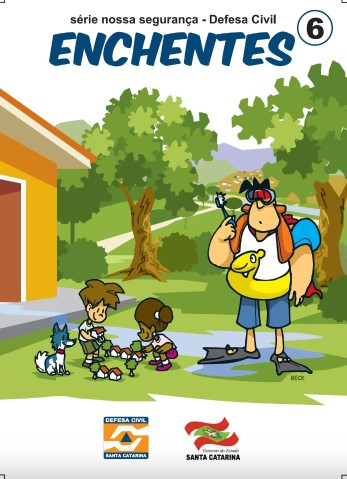 Enchentes – Série Nossa Segurança. Defesa Civil de Santa Catarina. História em quadrinhos, Secretaria de Estado da Defesa Civil, Projeto Percepção de Risco, 2012, cartilha 6.