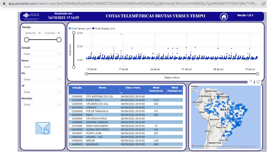 Esse painel de dados das estações telemétricas (que enviam dados automaticamente) reúne informações obtidas por meio de plataformas de coleta de dados da ANA. Assim, o público interessado nesses dados pode ter à disposição um quadro geral da situação das bacias hidrográficas, possibilitando os processos de tomada de decisão e de informação à sociedade. Por meio dessa ferramenta, os usuários podem acessar gráficos e exportar os dados com simplicidade.